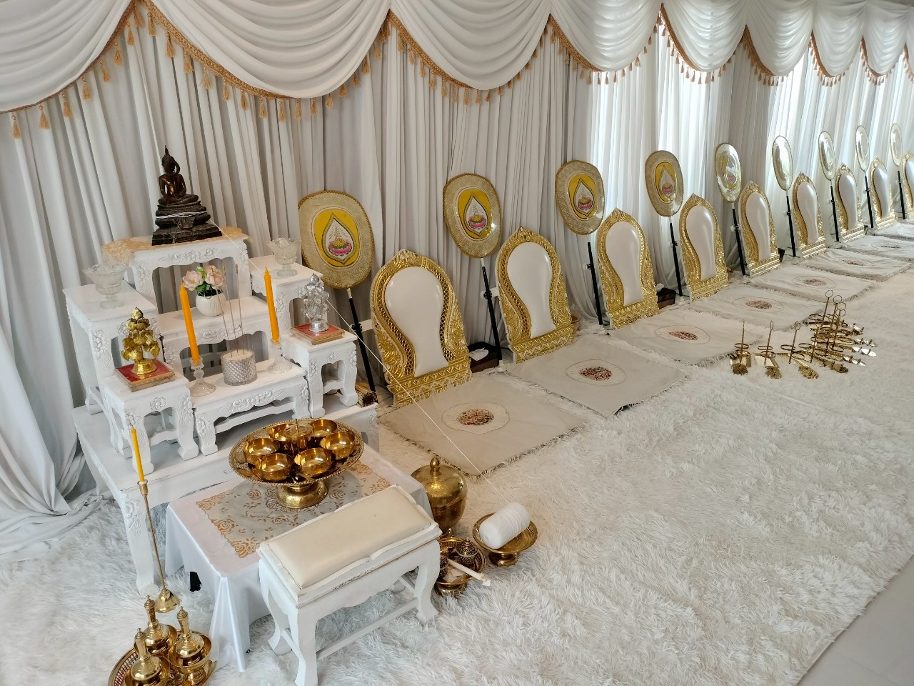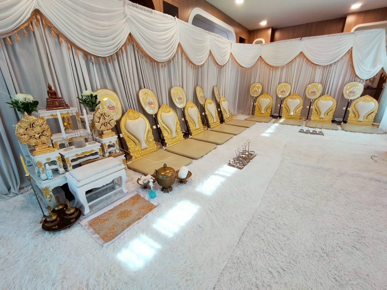 พร้อมเบาะรองนั่ง เเละพรมปูพื้นบริเวณพิธีการ สีพรมปูพื้นสามารถเลือกได้