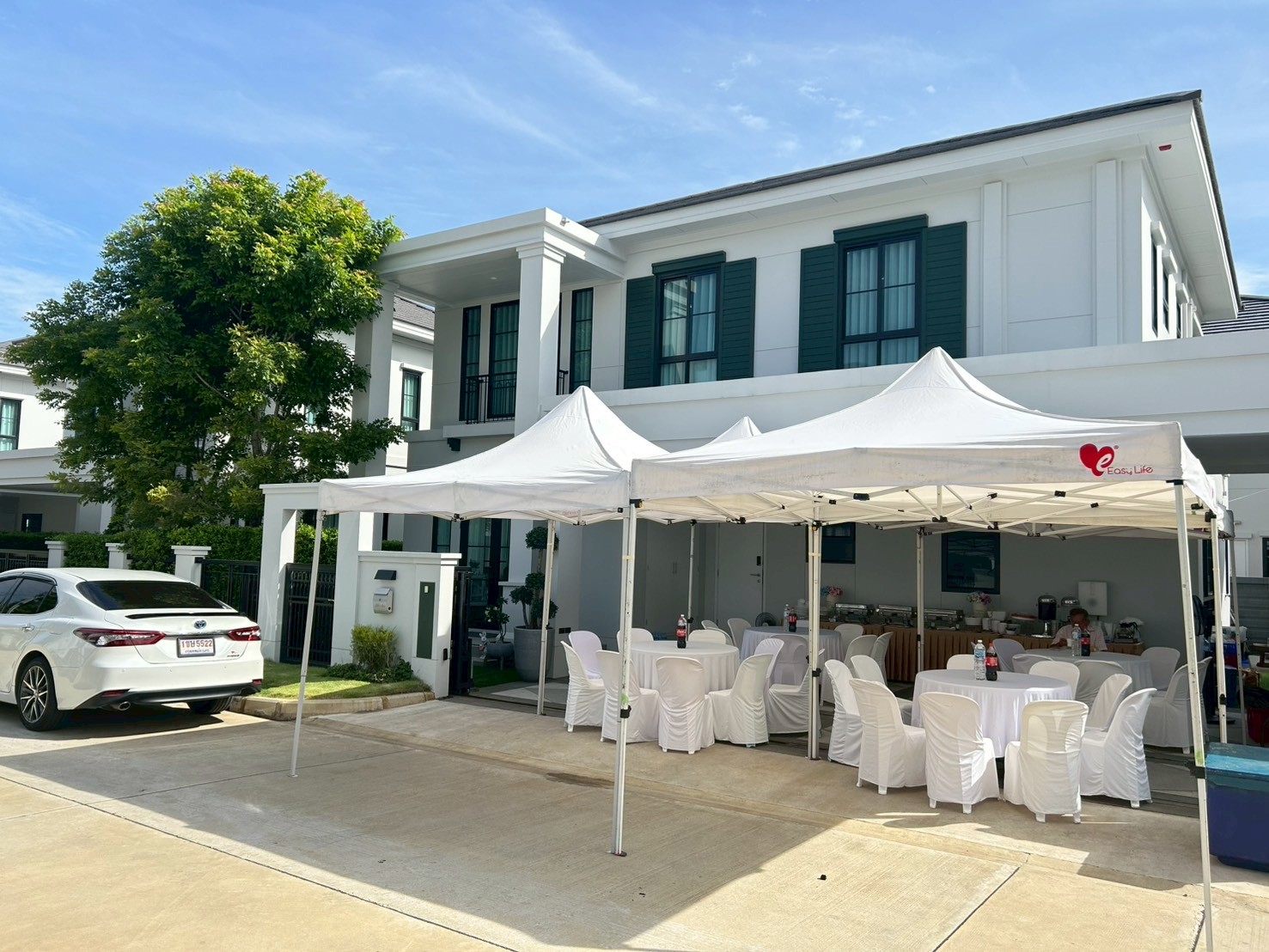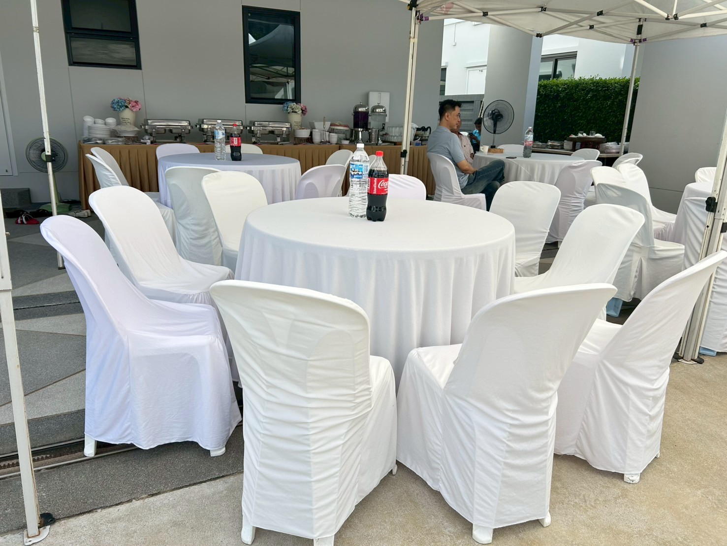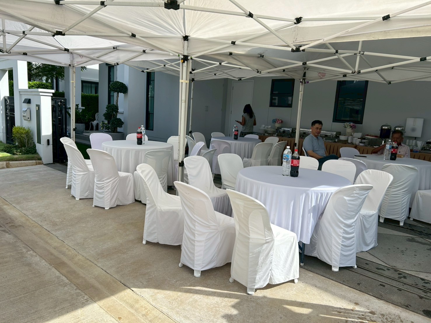 เต๊นสีขาว 3x3 จำนวน 4 หลัง ชุดโต๊ะกลม พร้อมเก้าอี้ 4 ชุด (ชุดละ10ที่นั่ง)