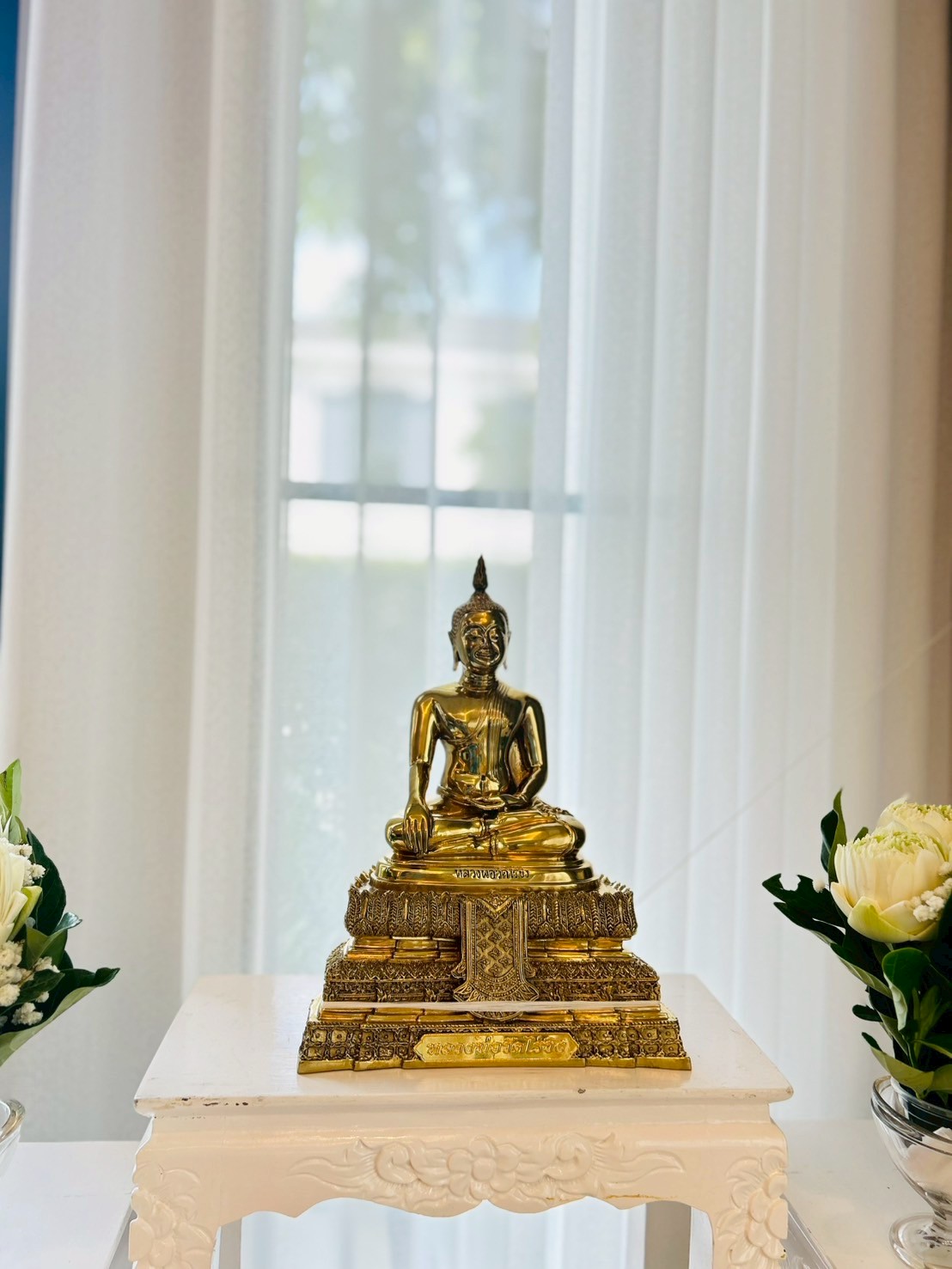 ชุดโต๊ะหมู่บูชา พร้อมดอกไม้สดบูชาพระประธาน