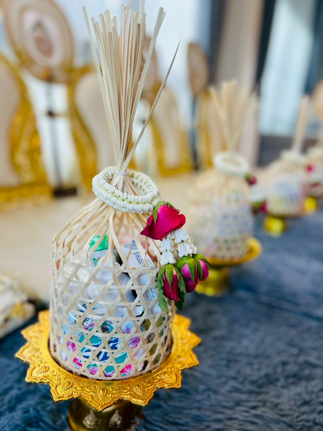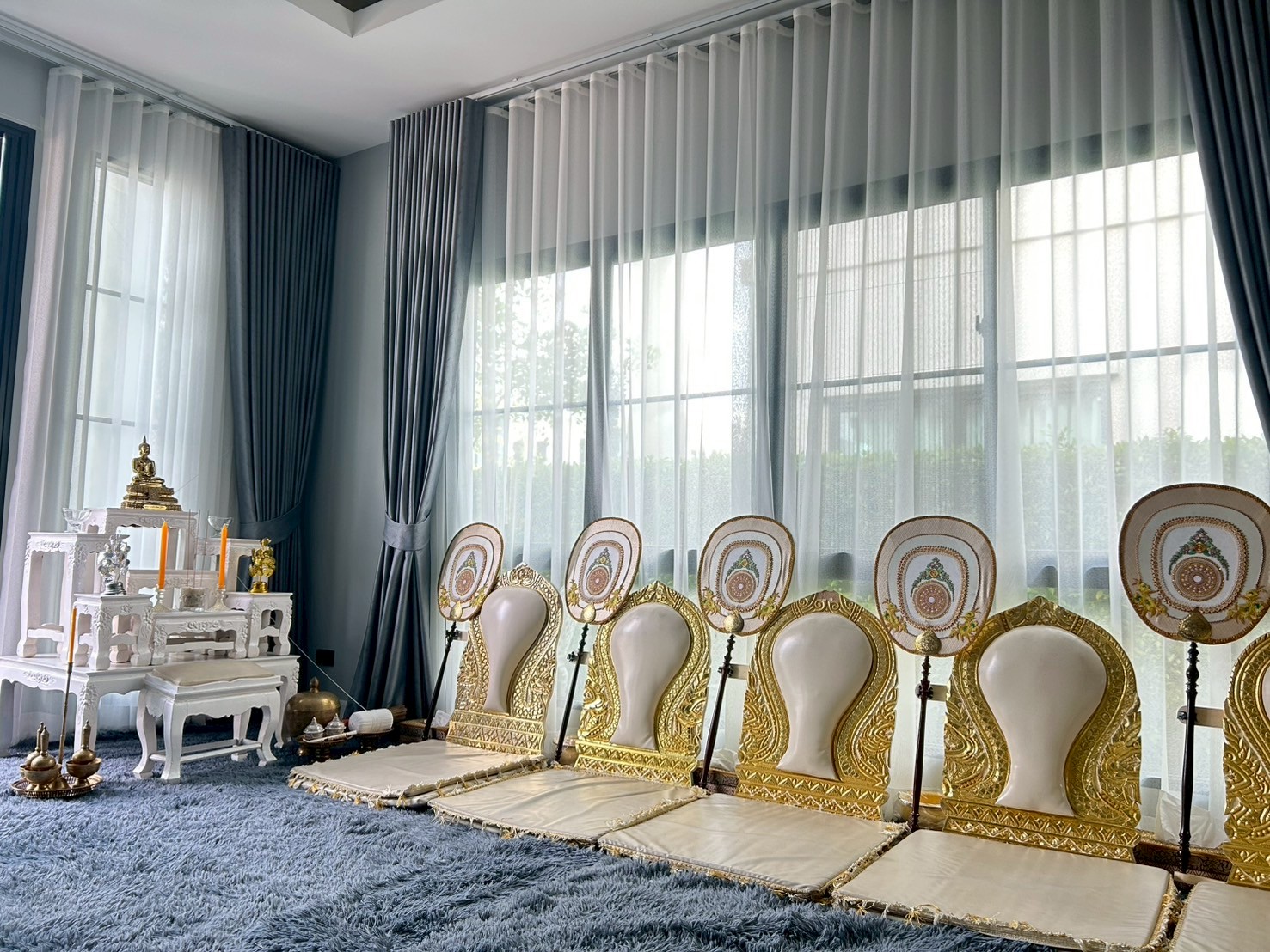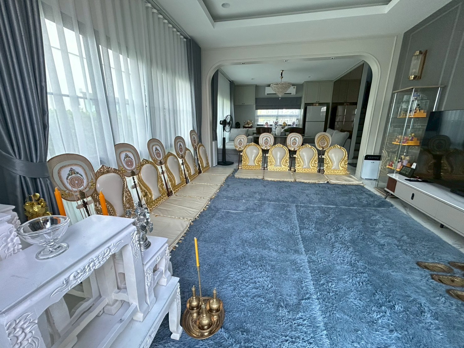 พร้อมเบาะรองนั่ง เเละพรมปูพื้นบริเวณพิธีการ สีพรมปูพื้นสามารถเลือกได้