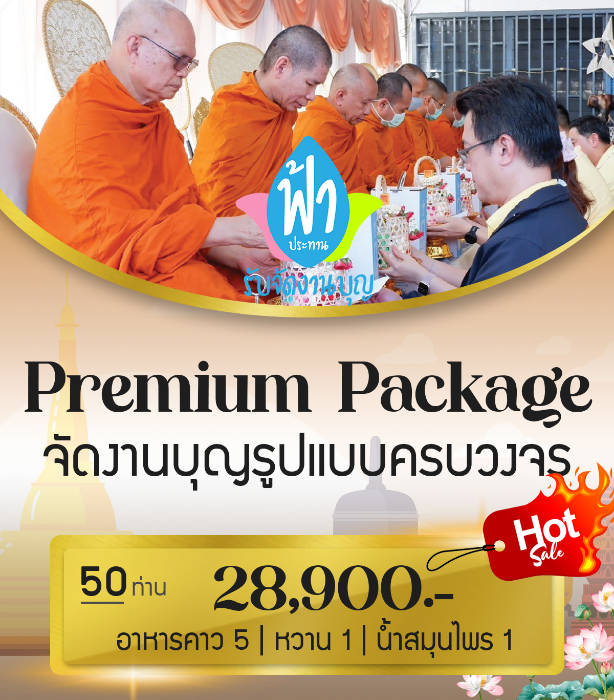 แพ็กเกจงานบุญครบวงจรสำหรับ 50 ท่านรวม