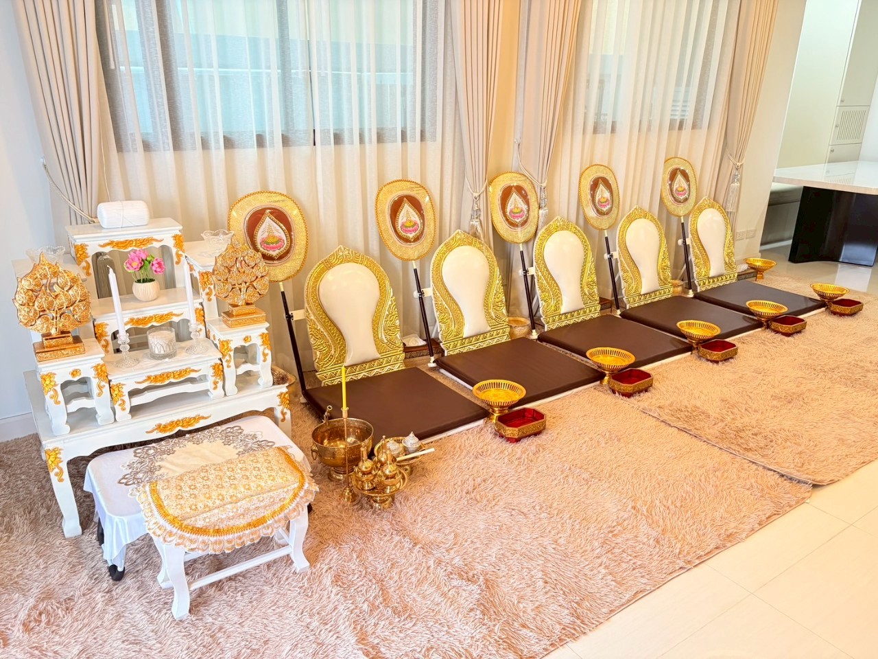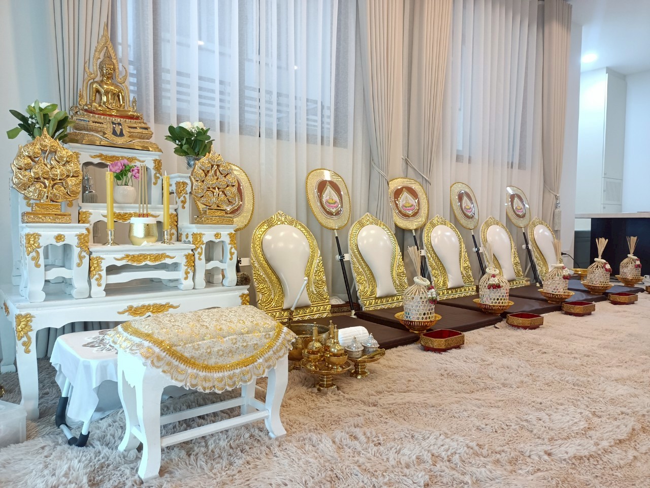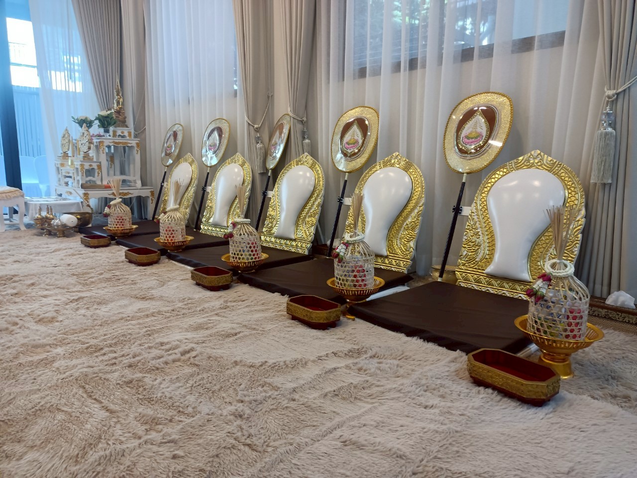พร้อมเบาะรองนั่ง เเละพรมปูพื้นบริเวณพิธีการ สีพรมปูพื้นสามารถเลือกได้
