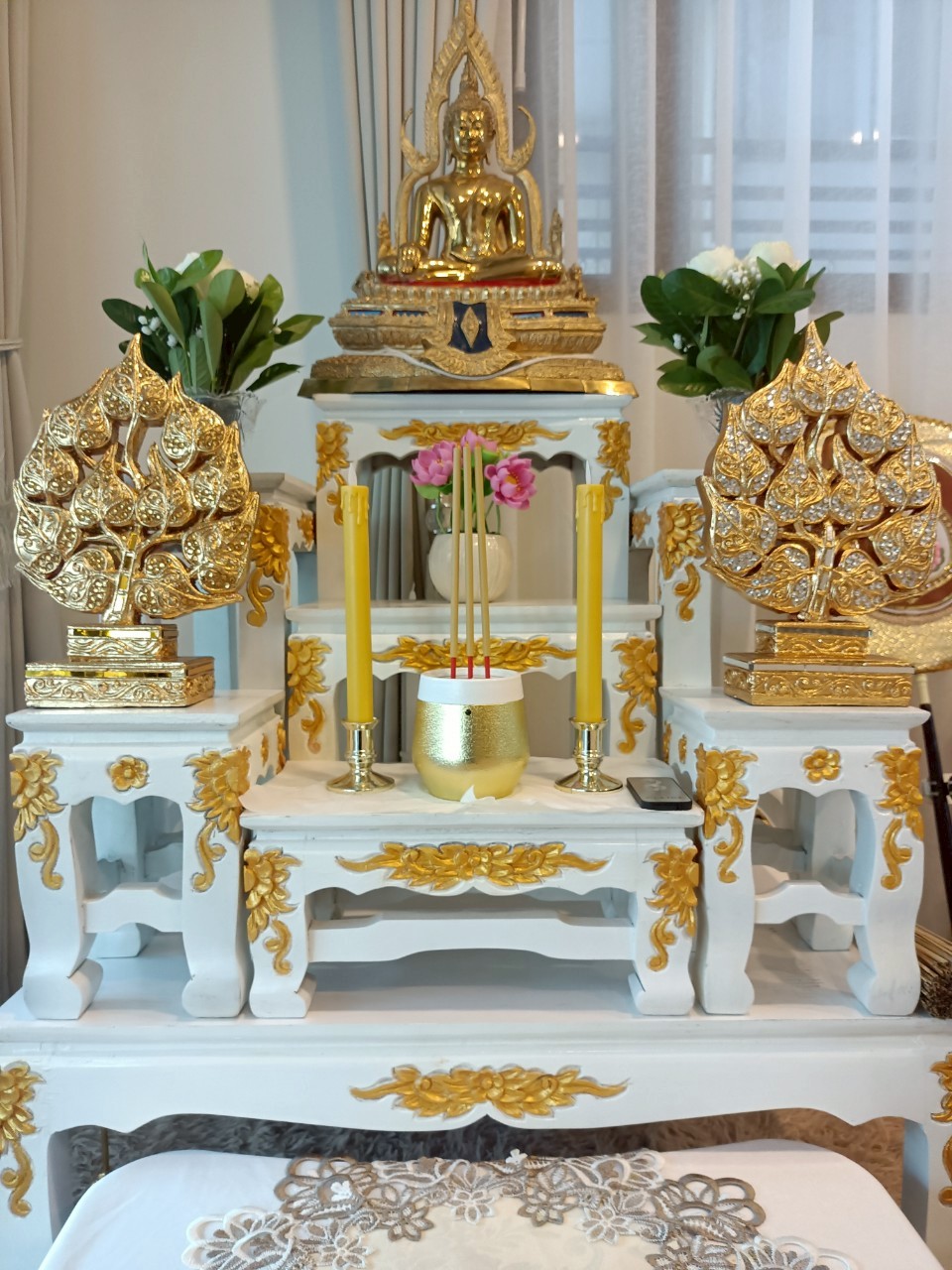 ชุดโต๊ะหมู่บูชา พร้อมดอกไม้สดบูชาพระประธาน